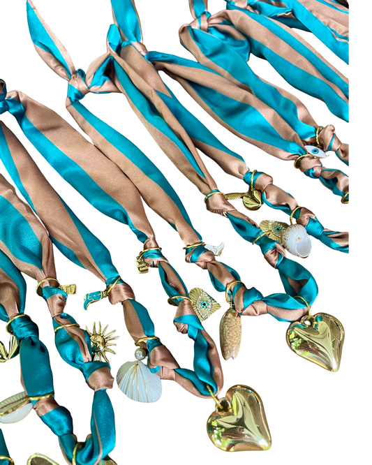 Game Day Scarf Charm Necklace -Teal & Bronze